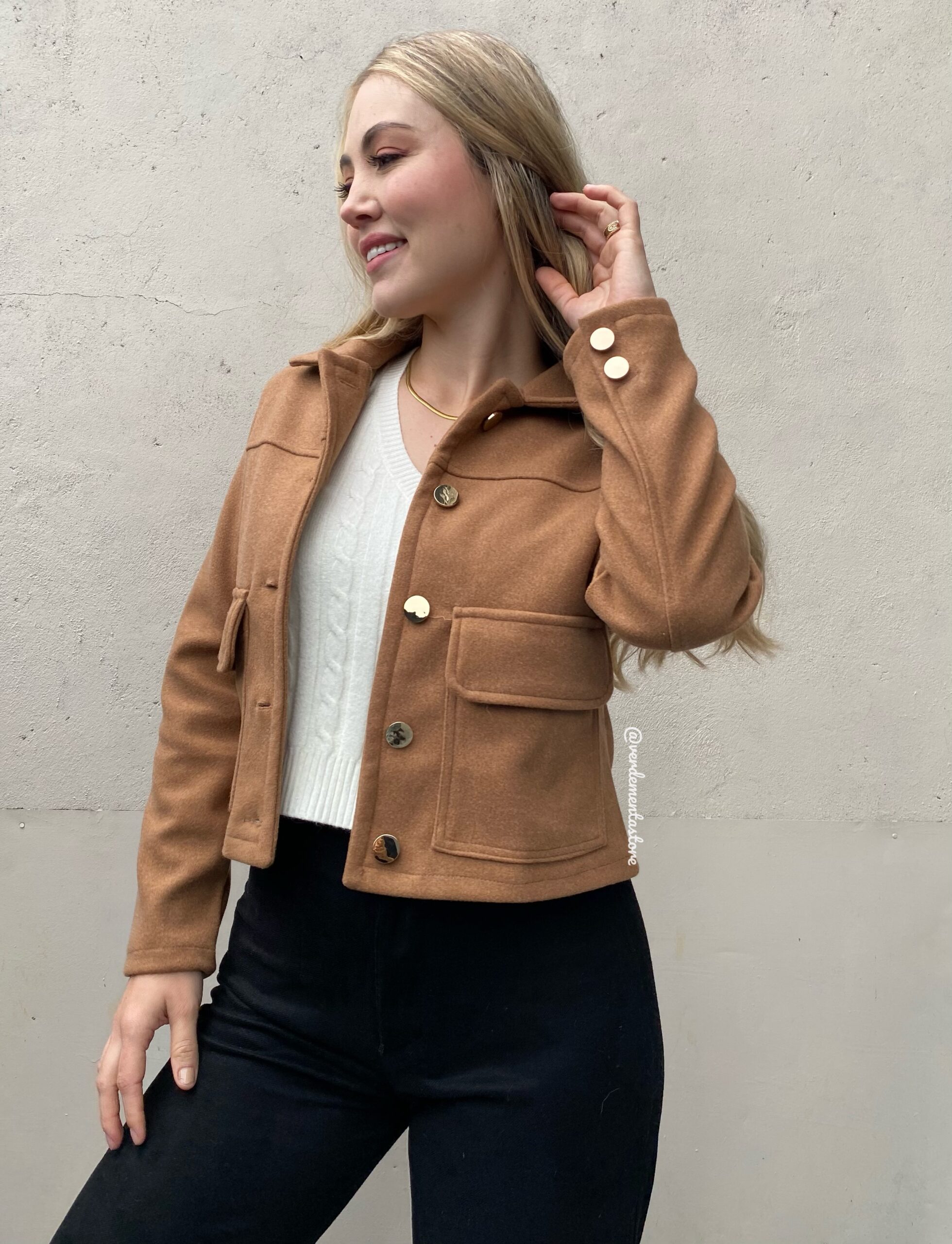 CHAQUETA EN PAÑO COLOR CAMEL CON BOLSILLOS