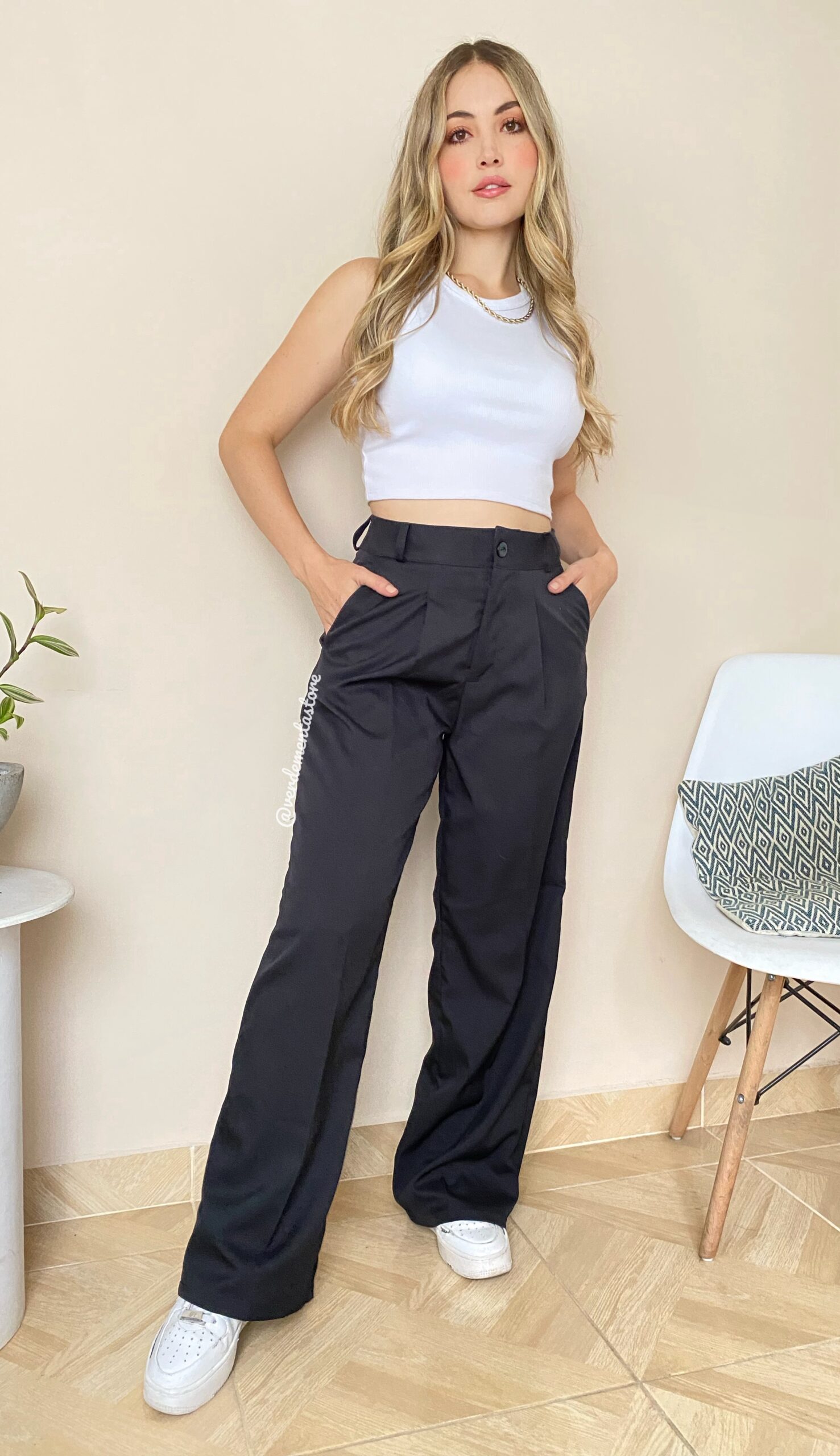 PANTALON SILUETA AMPLIA, TIRO ALTO, TELA FRESCA